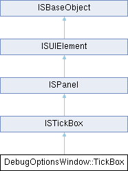 | | ISTickBox (number x, number y, number width, number height, string name, unknown changeOptionTarget, umbrella::ISTickBox::OnChange changeOptionMethod, unknown changeOptionArg1, unknown changeOptionArg2) |