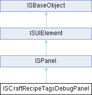 | | ISCraftRecipeTagsDebugPanel (number x, number y, number width, number height, IsoPlayer player) |