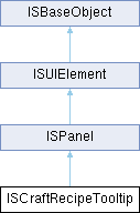 | | ISCraftRecipeTooltip (number x, number y, number width, number height, IsoPlayer player, CraftRecipe recipe, BaseCraftingLogic logic, boolean followMouse, boolean debugMode) |