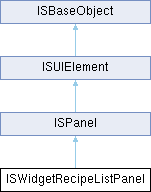 | | ISWidgetRecipeListPanel (number x, number y, number width, number height, IsoPlayer player, BaseCraftingLogic logic, unknown callbackTarget) |