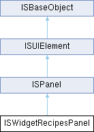 | | ISWidgetRecipesPanel (number x, number y, number width, number height, IsoPlayer player, CraftBench craftBench, IsoObject isoObject, BaseCraftingLogic logic, umbrella::ISWidgetRecipesPanel::CallbackTarget callbackTarget) |
