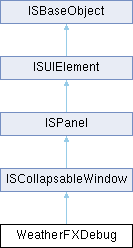 | | WeatherFXDebug (number x, number y, number width, number height, IsoPlayer player) |